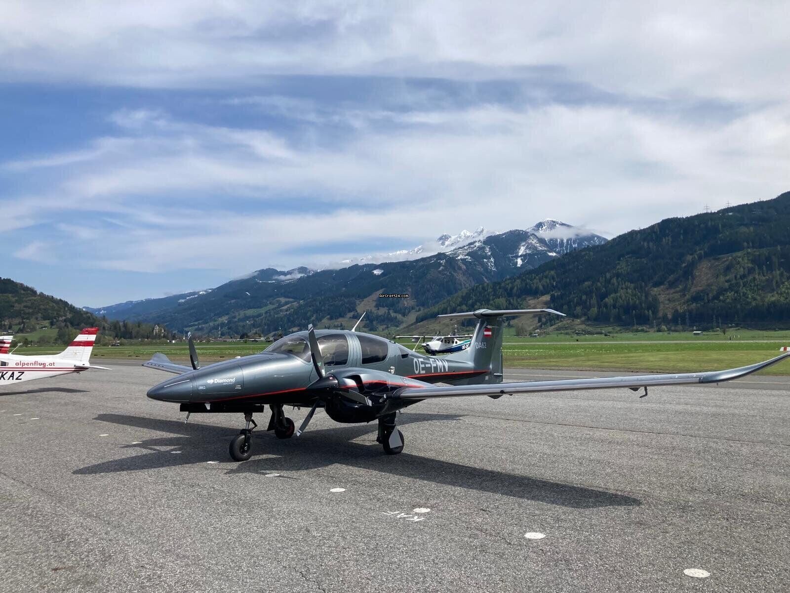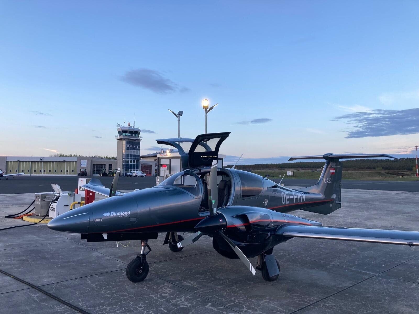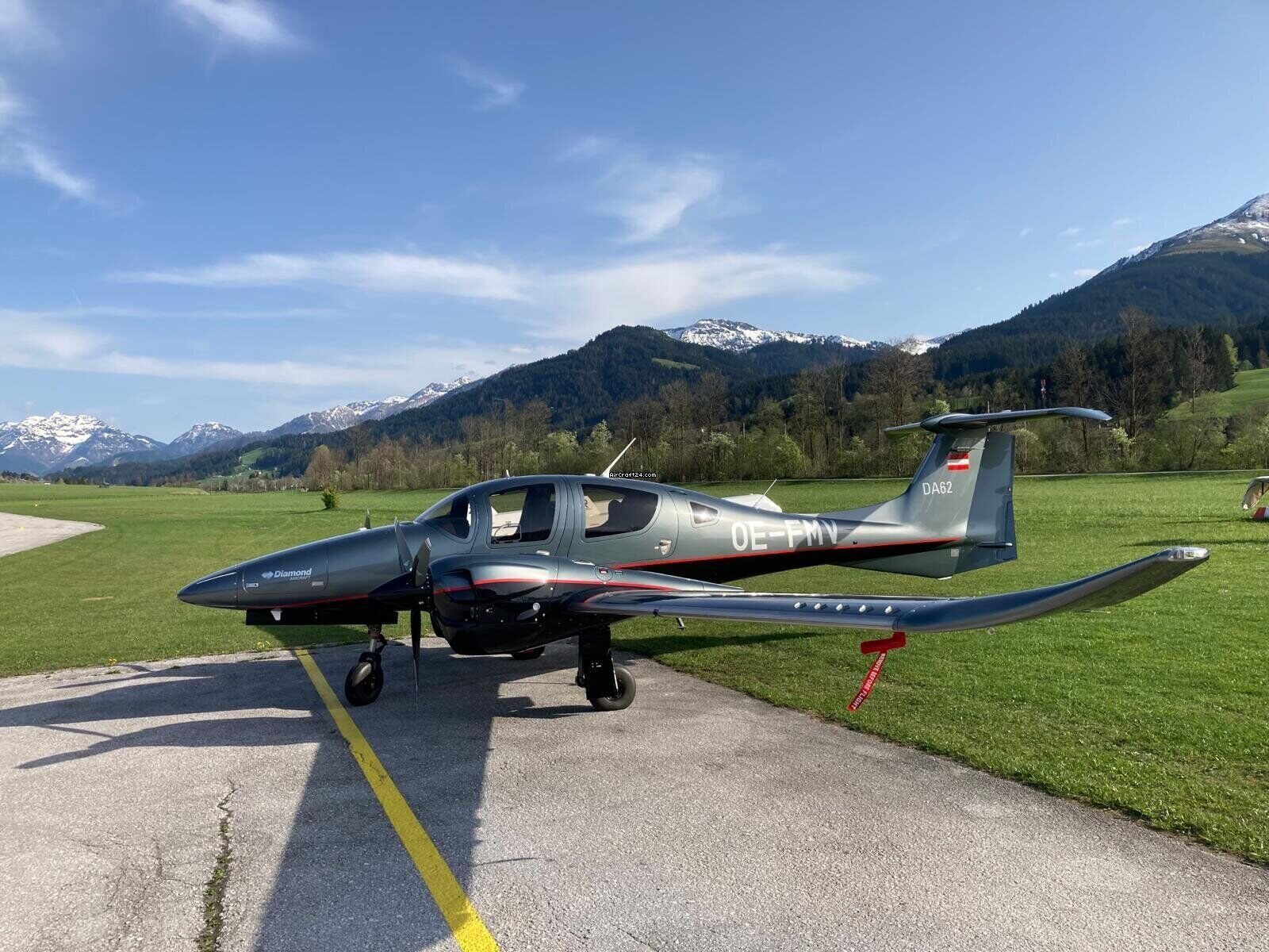 | Base data | | Type: | Multiprop | | Make: | Diamond | | Model: | DA62 | | Year built: | 2024 | | Registration No.: | OE-FMV | | Serial No.: | 62.264 | | Attributes: | IFR certified IFR equipped Always hangared | | Location: | Germany, Schönhagen, EDAZ | | Total Time (TTAF): | 100 h | | Price: | € 1,487,500 (~ £ 1,297,695) | | Net-price: | £ 1,090,500 € 1,250,000 |