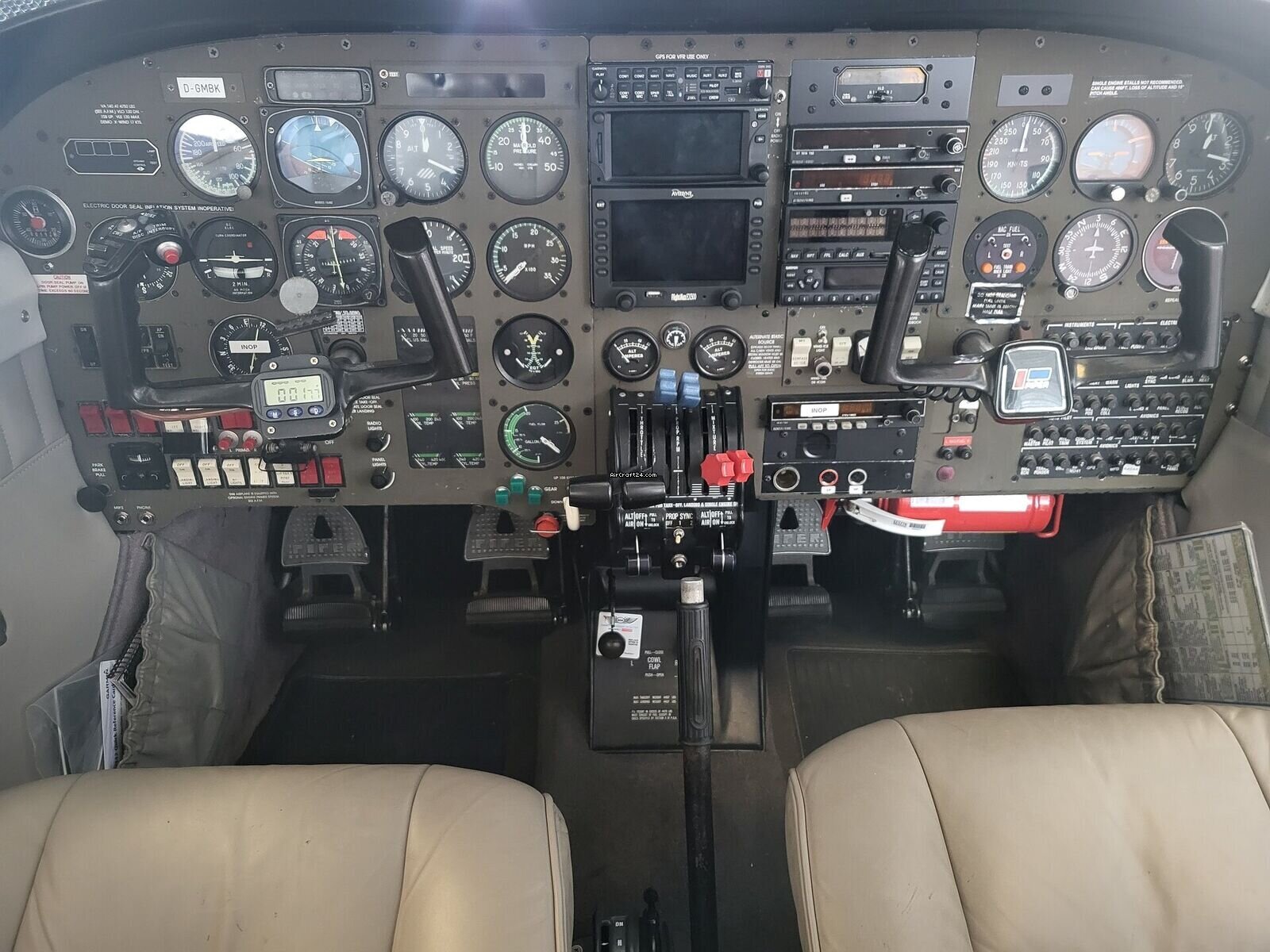Engine(s) | Number of engines: | 2 | Make/Model: | TSIO-360-KB | LTSIO-360-KB | Power: | 220 PS | 220 PS | Total Time: | 1490 h | 1490 h | TBO (hours): | 2160 h | 2160 h | Prop Make/Model: | McCauley | McCauley | Prop Total Time: | 281 h | 281 h |