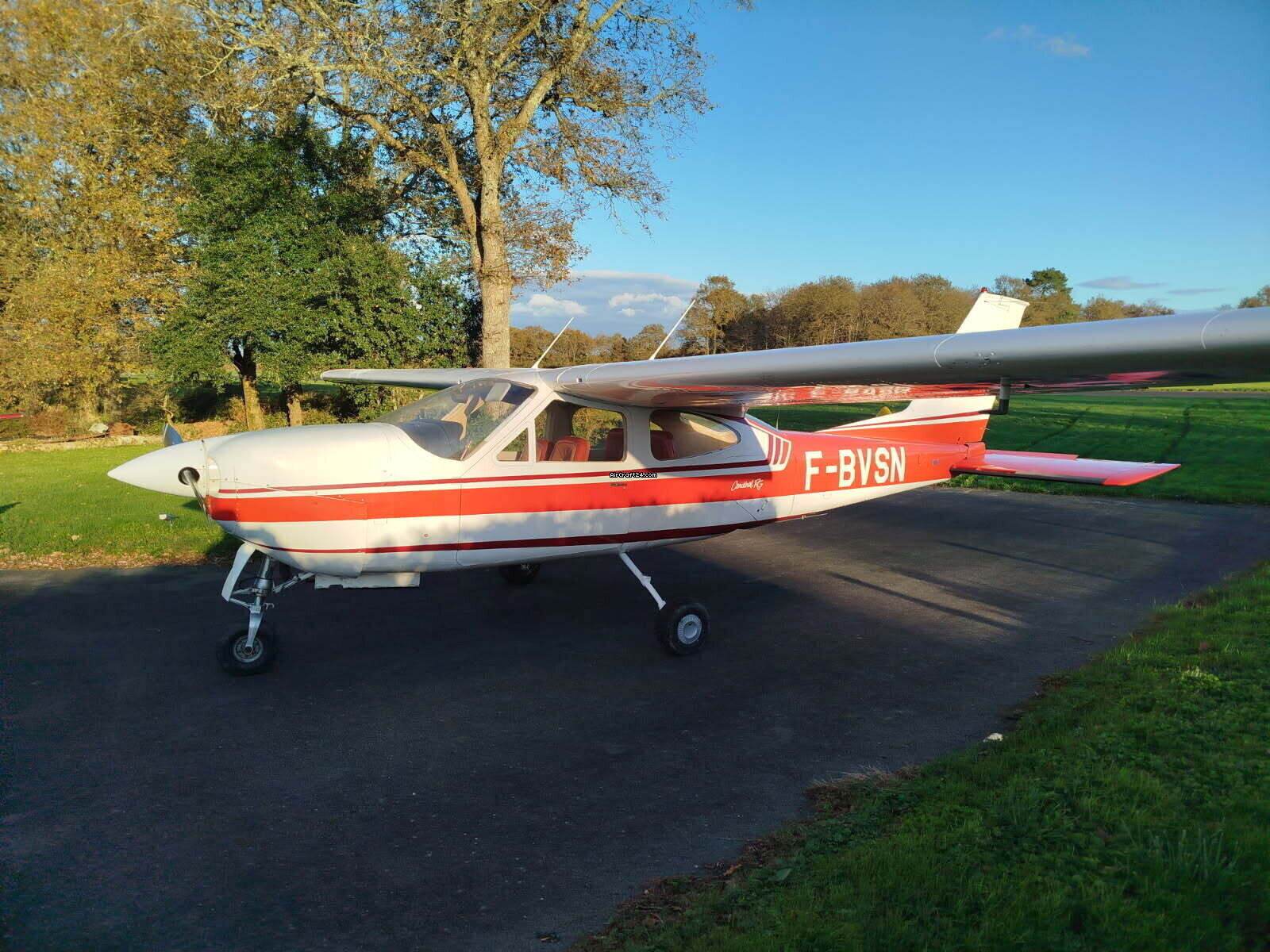 | Base data | | Type: | Single Prop | | Make: | Cessna | | Model: | F-177-RG CARDINAL | | Year built: | 1974 | | Registration No.: | F-BVSN | | Serial No.: | 102 | | Attributes: | Always hangared | | Last annual: | 2/2026 | | Location: | France, PAMIERS, LFDJ | | Total Time (TTAF): | 4210 h | | Price: | € 78,000 (~ £ 67,993) | | EU VAT paid: | yes | | No. of passengers: | 4 |