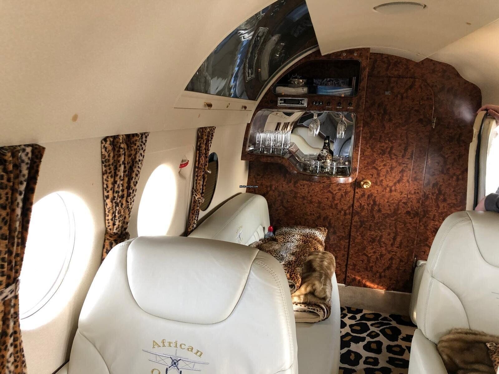 | Interior | | Luxury VIP leather cabin with adjustable-backrest armchairs & two tables, Savannah-style fit-out, Panoramic bubble window. |