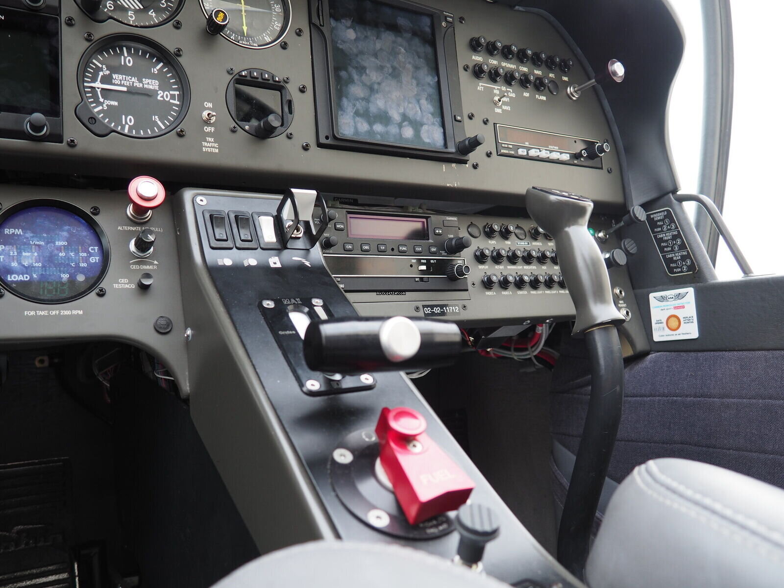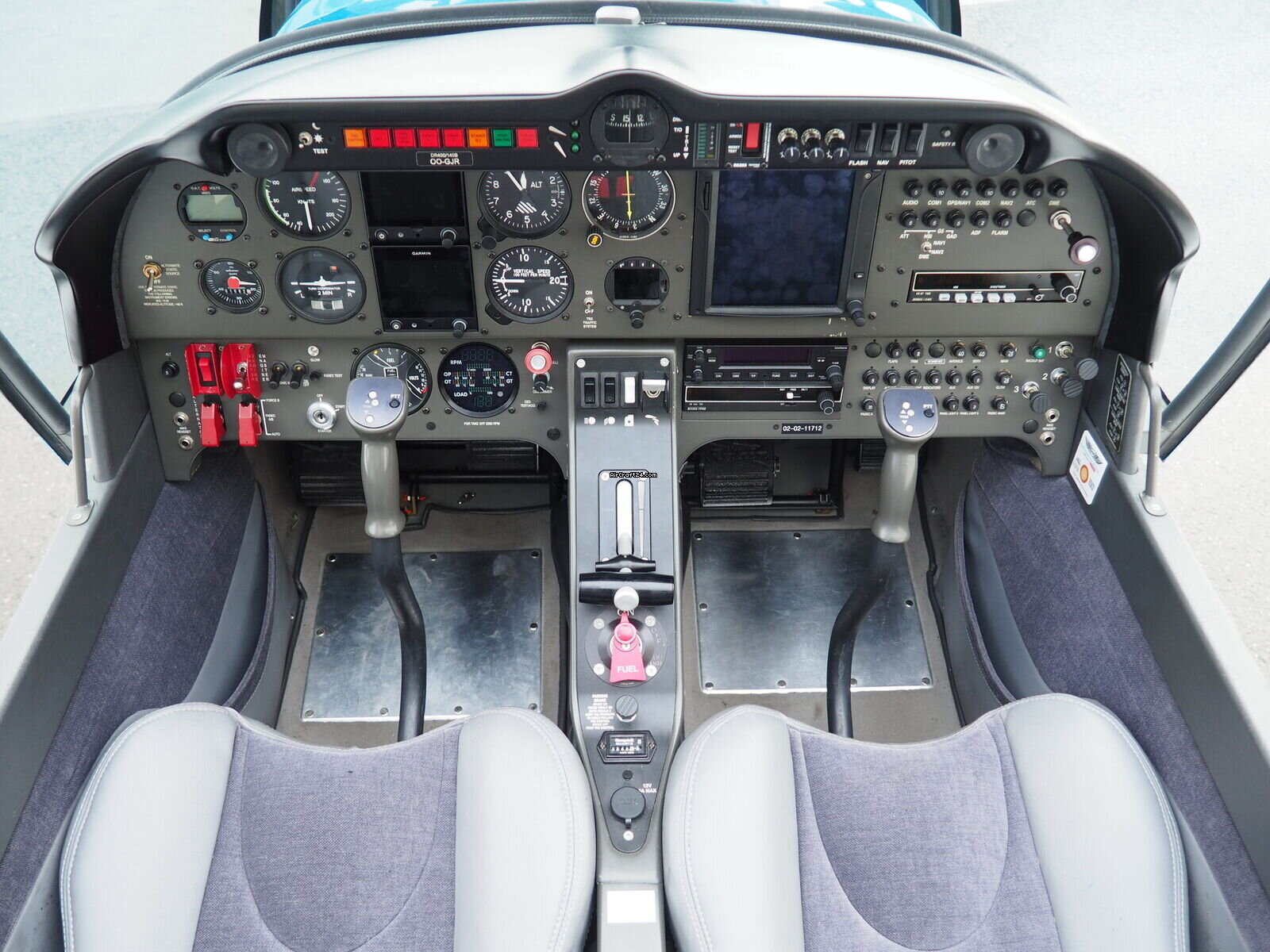 | Interior | | The cabin of this Robin DR-400 is a testament to thoughtful ergonomics and premium materials, offering a spacious four-seat configuration that ensures comfort for both pilot and passengers. The interior features a striking slate-grey and charcoal upholstery design. The seats are finished in a durable, high-quality fabric with light grey synthetic leather accents for a modern, automotive-style feel. |