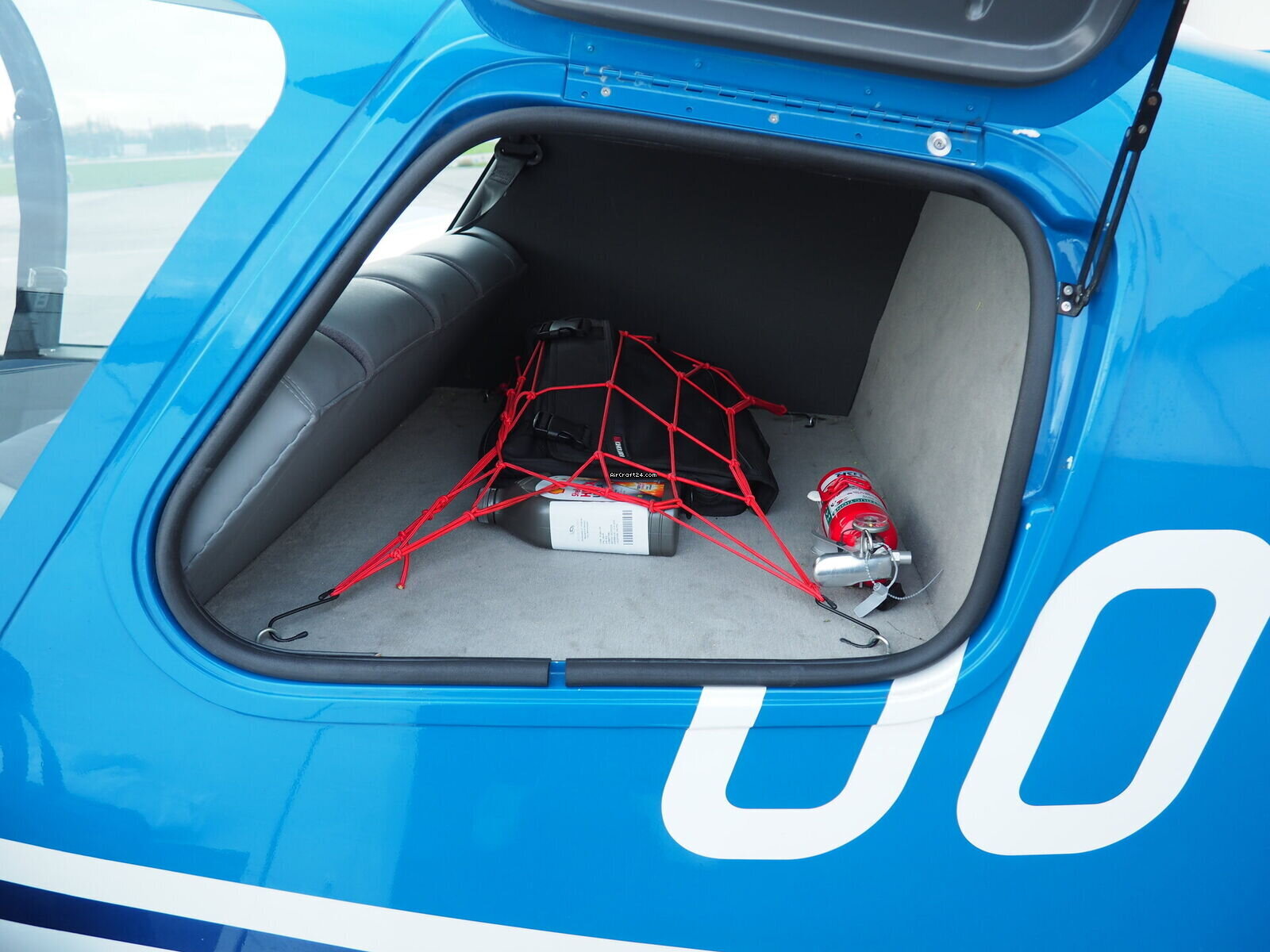 | Exterior | | Finished in a stunning electric blue over crisp white, this aircraft commands attention on any ramp. The dynamic "S-curve" striping emphasizes the sleek lines of the modern DR-400 fuselage |